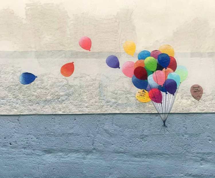 Ici j’ouvre une cage pour libérer oiseaux et papillons, là je m’accroche à des ballons multicolores…